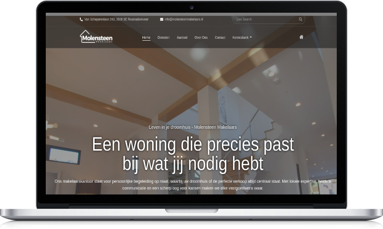 Molensteen Makelaars zocht een frisse en betrouwbare online uitstraling die hun deskundigheid en persoonlijke aanpak in de woningmarkt weerspiegelt. De site moest niet alleen helder en overzichtelijk zijn, maar ook het actuele woningaanbod goed presenteren — mét koppeling naar externe woningplatforms.